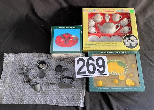 LOT#269G: China Childs 3 Tea Sets & Cast Iron Set