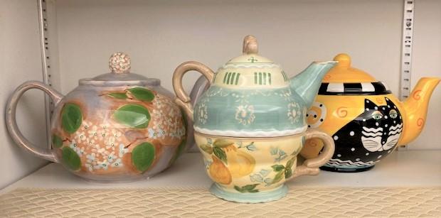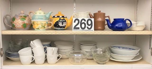 Includes: teapots, coffee cups, assorted dishes & bowls. Measurement: 7"H (tallest) 11"W (widest)