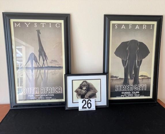 LOT#26LR: Trio Framed Safari Pictures