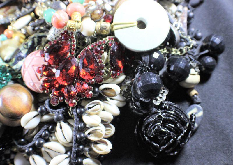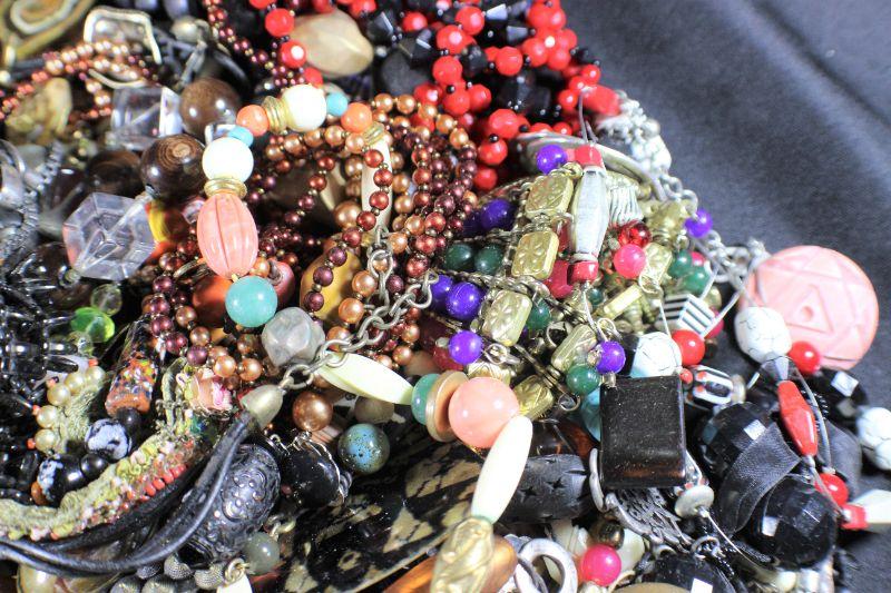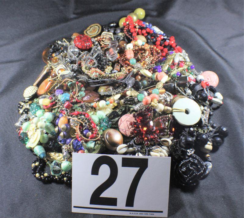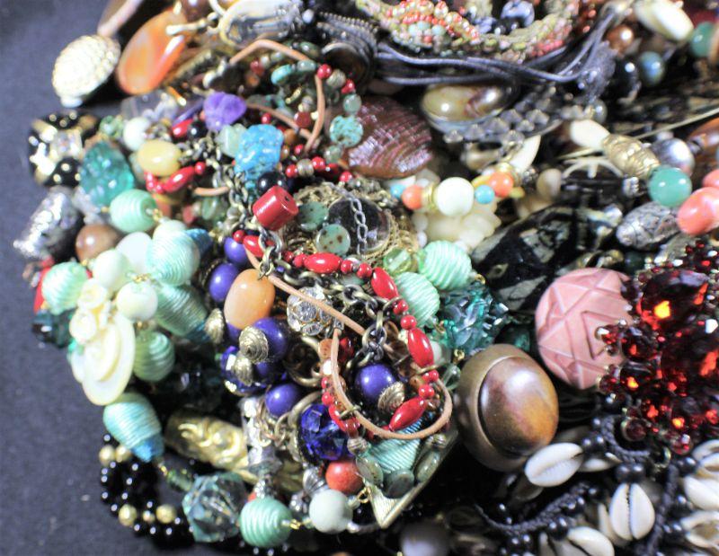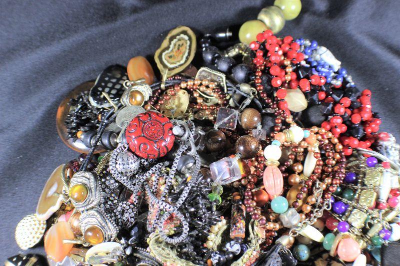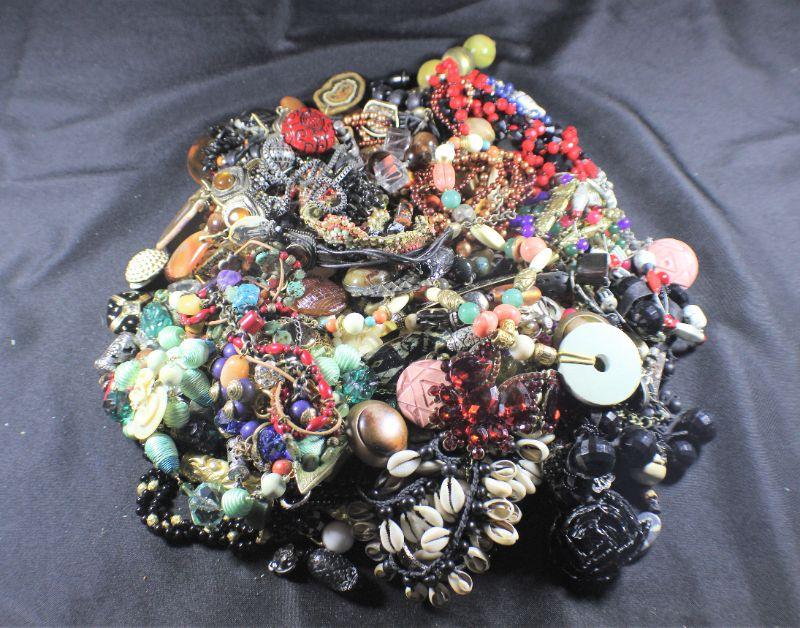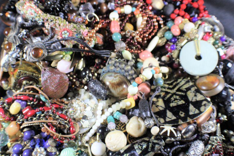 Mixed Assortment of necklaces, earrings & more. Bag size: 2.5 gallons. Estimated total lot weight: 8lbs