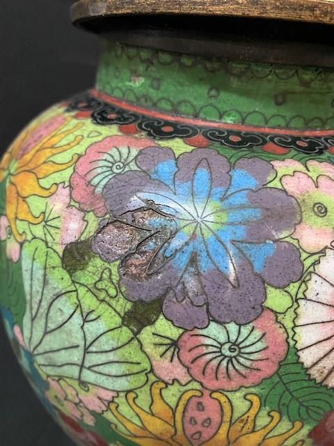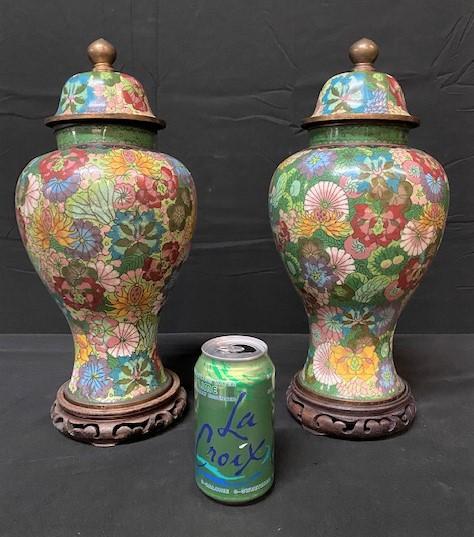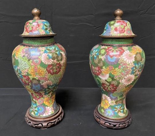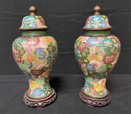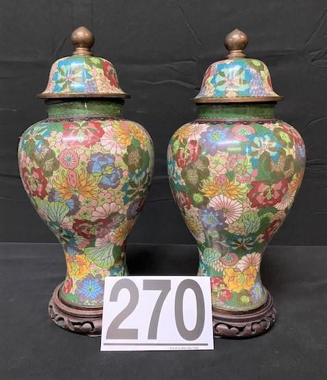 LOT#270: Antique Chinese Cloisonne Lidded Vases
