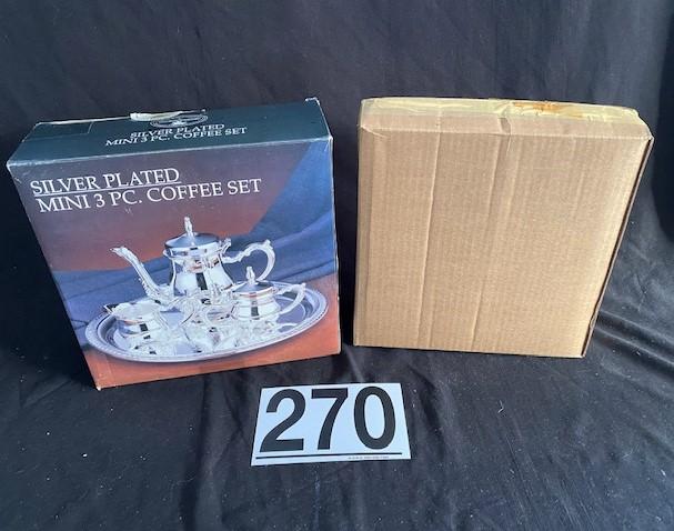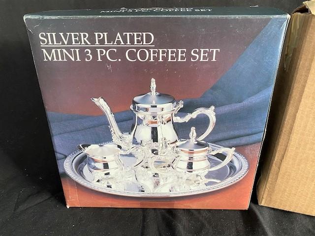 LOT#270G: NOS Mini Silverplated 3 Piece Coffee Set