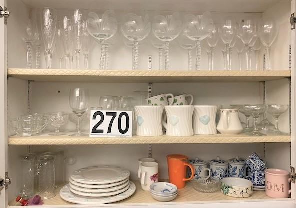 Includes: assorted stemware, coffee mugs, plates & more. Measurement: 10"H (tallest) 11"W (widest)