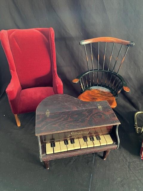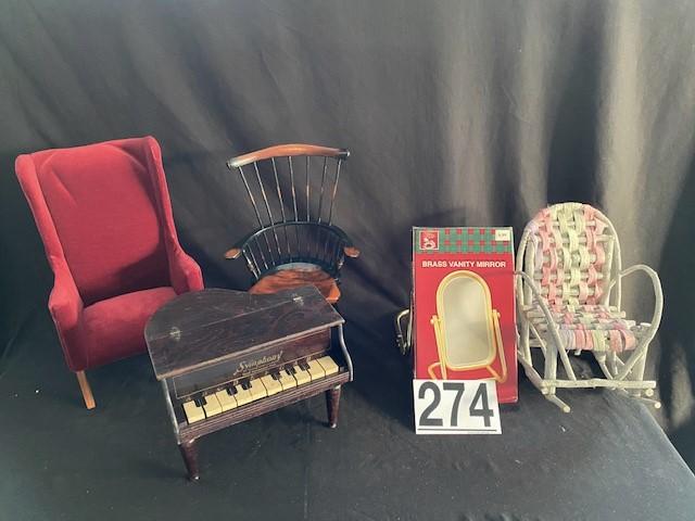 Chairs, piano, mirror. Estimated weight of lot: 10lbs. Measurement: 30" x 14" x 12"