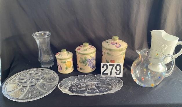 LOT#279G: 3 Piece Canister Set - Pitcher, Serving Platters