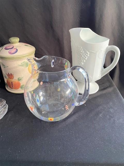 Millefiori water pitcher, vase & more. Estimated weight of lot: 15lbs. Measurement: 11" x 13" (largest)