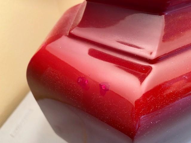 Red in color. Has some touch up paint (pictured). Measurement: 25"H x 14"W