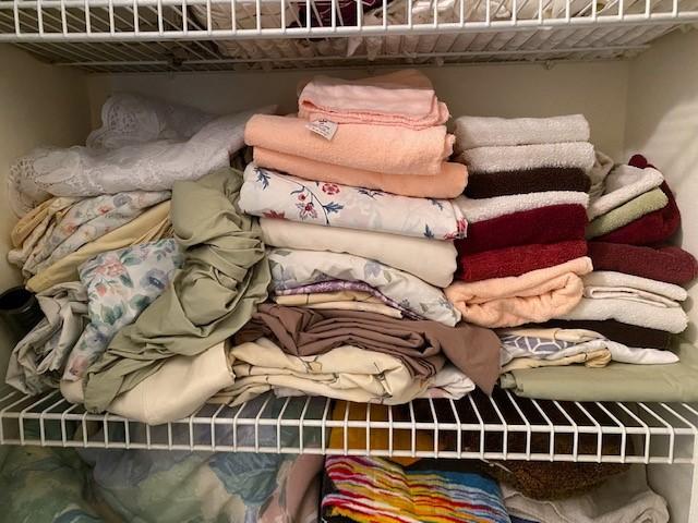 Includes towels, pillows, blankets, sheets, and more. Winning bidder MUST take ALL items in lot.