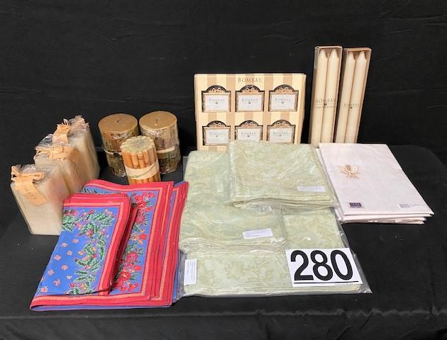 Includes: candles, table cloths, napkins, placemats & picture frame.