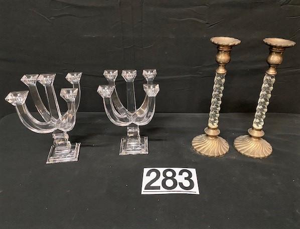 2 pairs. One pair is candelabra; other is pair of candle sticks. Measurement: 13"H (candle stick; each) x 6" (candelabra; each)