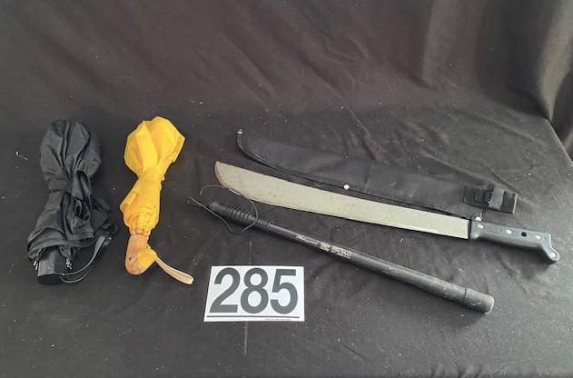 LOT#285G: Machete, Fish Billy Club & Umbrellas
