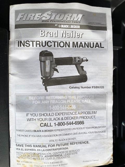 LOT#286G: Black and Decker Fire Storm Air Nailer