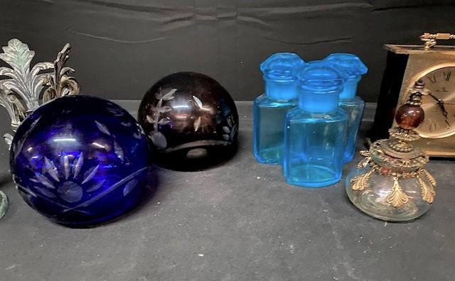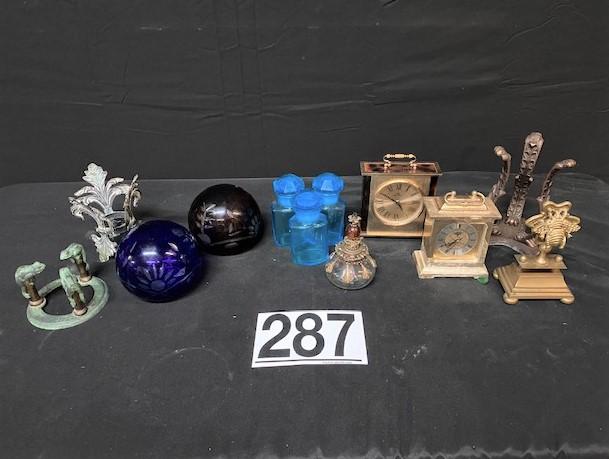 Includes: small clocks, small pedestals, note clip & cut glass orbs.