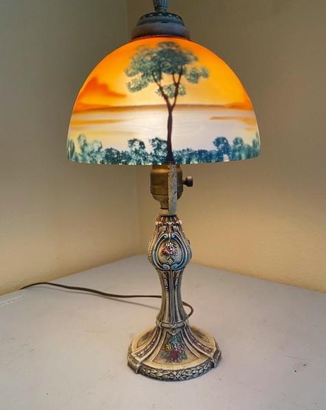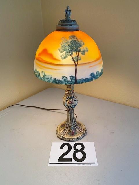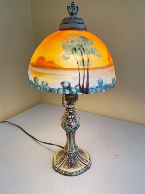 LOT#28D: Reverse Painted Bronze Boudoir Lamp