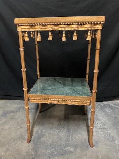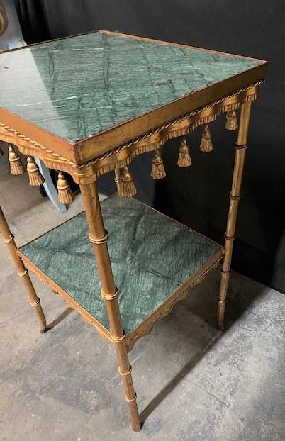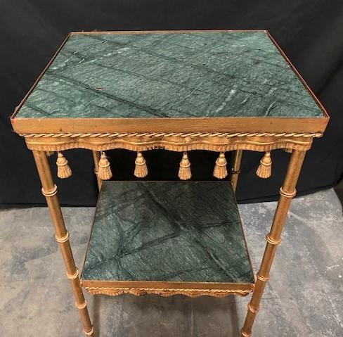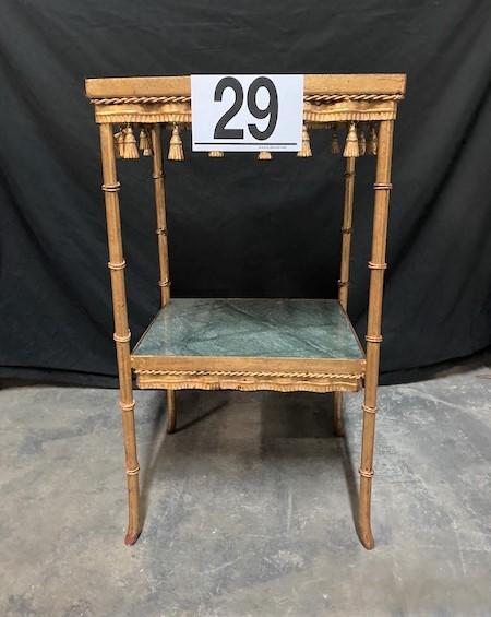 LOT#29: Gilted 2 Tier Small Table with Green Marble Inserts