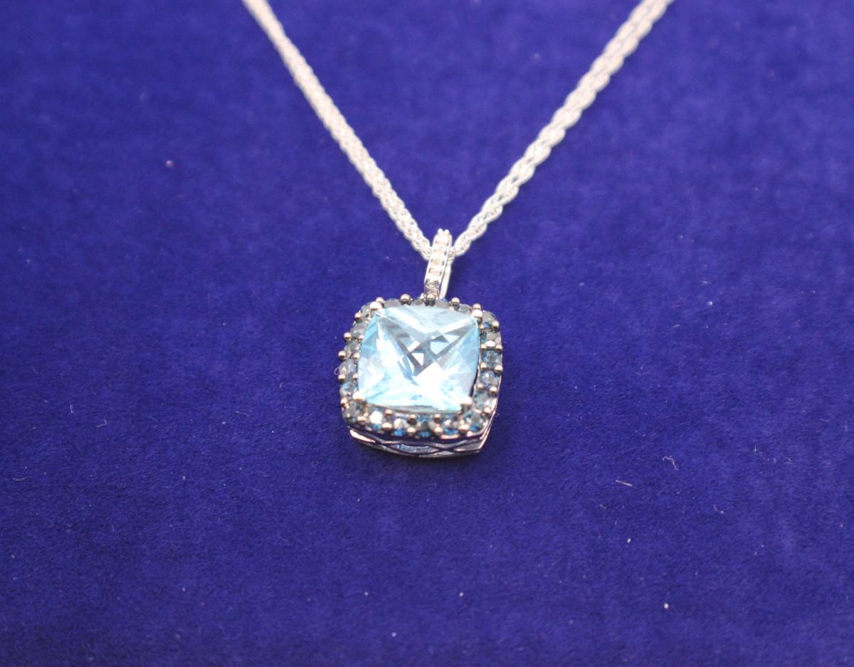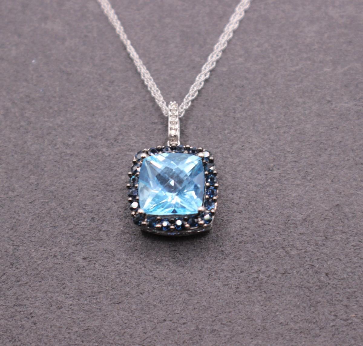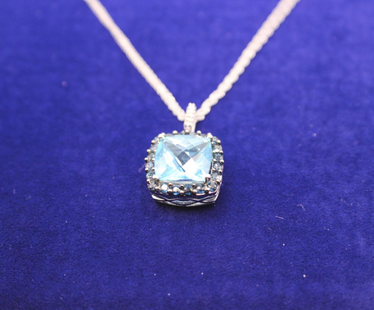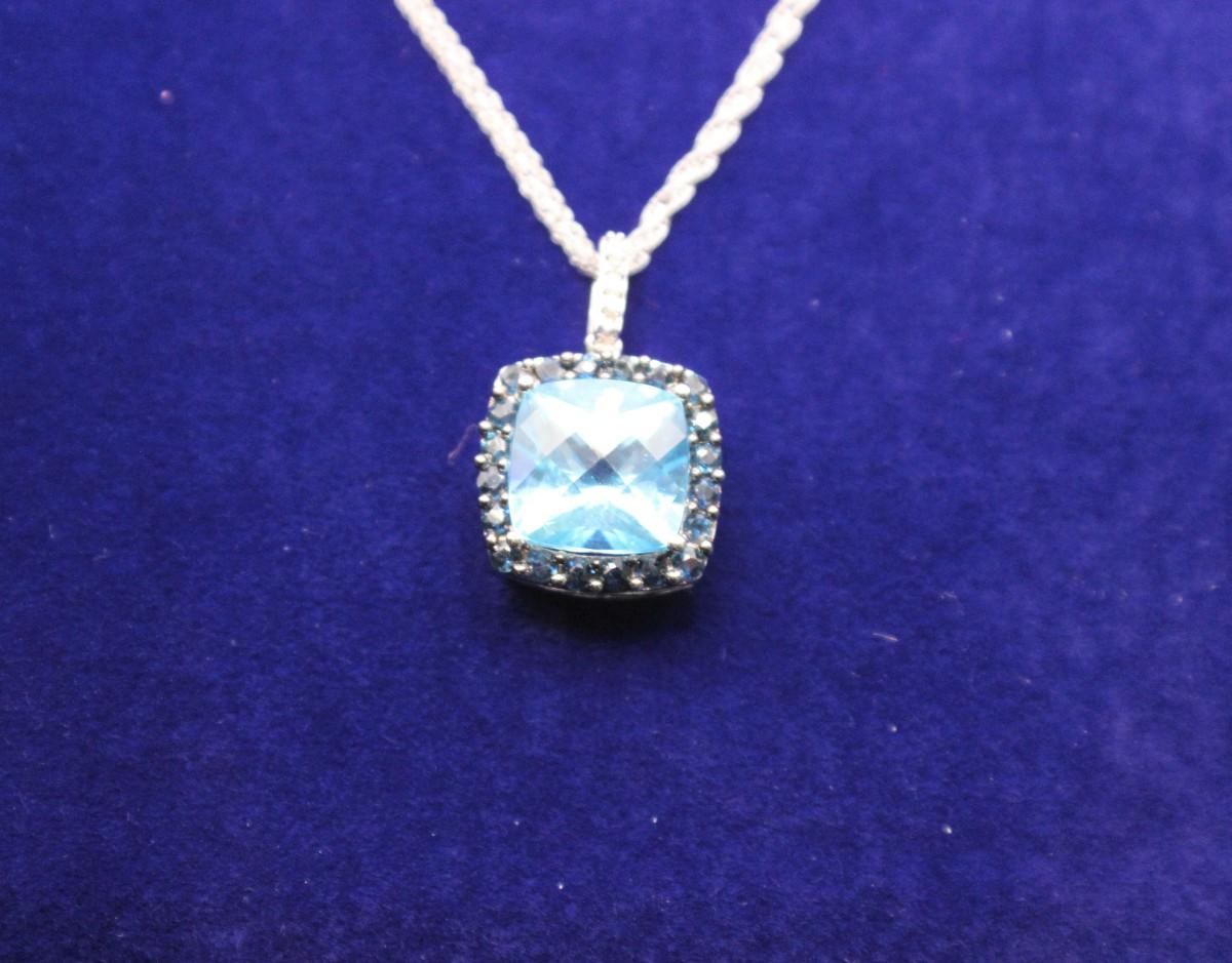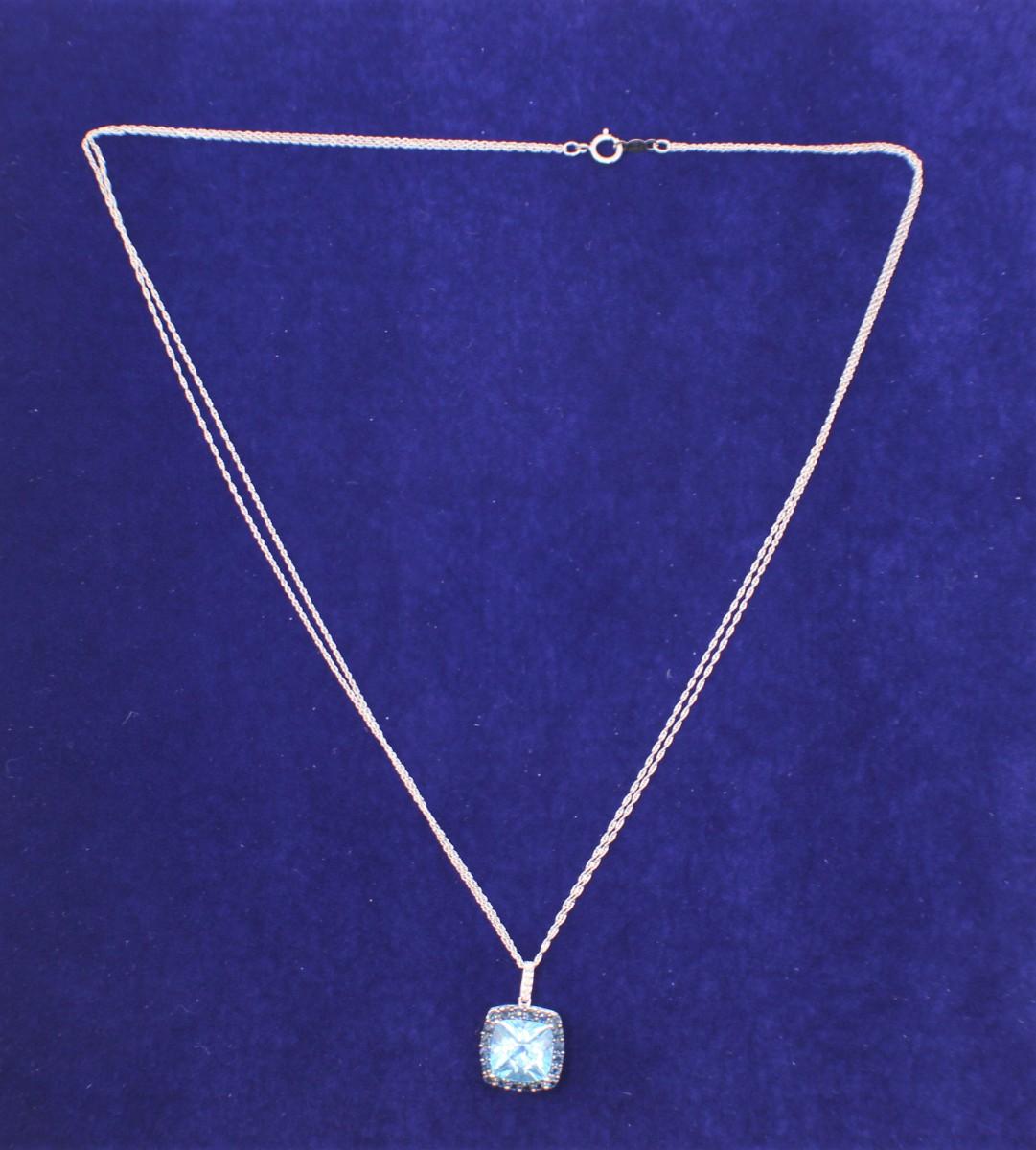 LOT#29: Stamped 14K White Gold Necklace and Blue Topaz [4.05g]