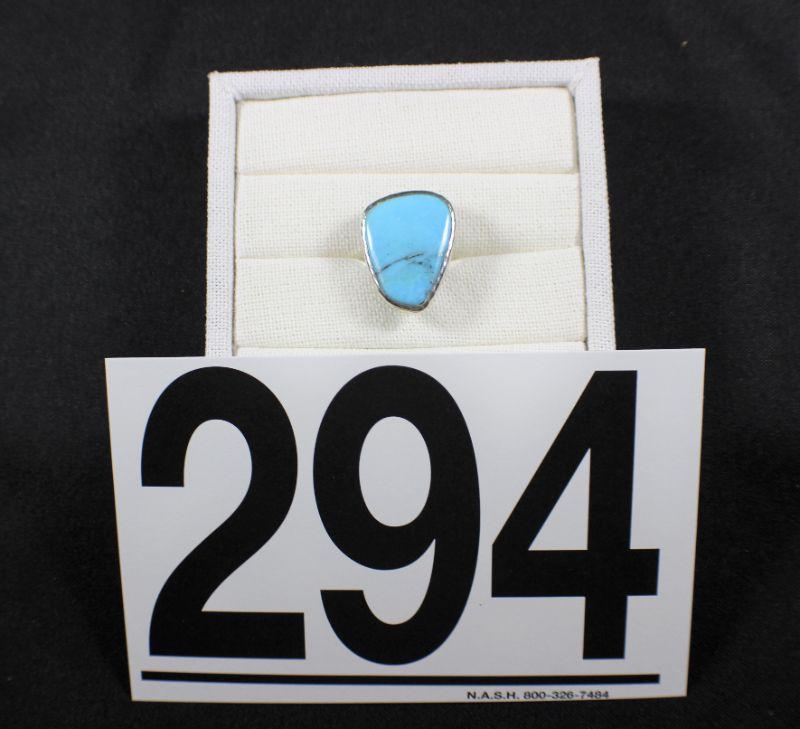 LOT#294J: Marked .925 Silver Silver & Turquoise Ring [10.4g]