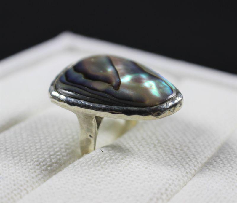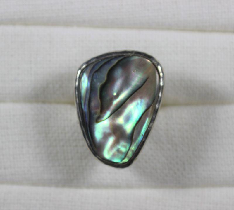 LOT#295J: Marked .925 Silver & Abalone Ring [10.8g]