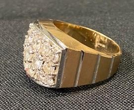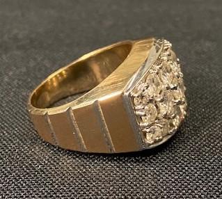 LOT#2J: Men's Stamped 14K Yellow & White Gold "Diamond" Ring [18.42g]