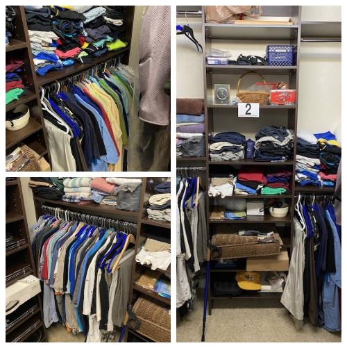 Includes t-shirts, golf shirts, suits, shoes, and more. Mostly shoe sizes 12w & clothing mostly L.