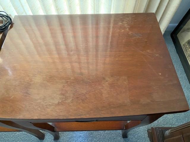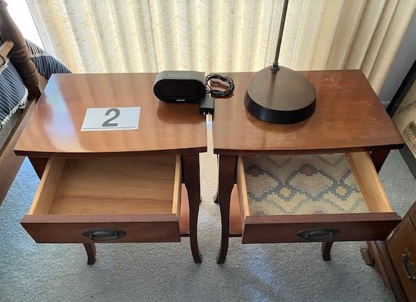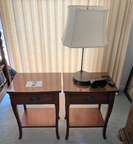 With lamp. Surface scratches and staining. Measurements: 18 1/2"W x 13 1/2"D x 25"H (each). Clock NOT included.