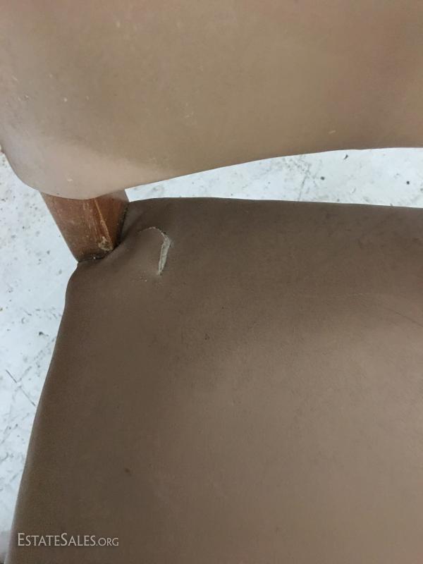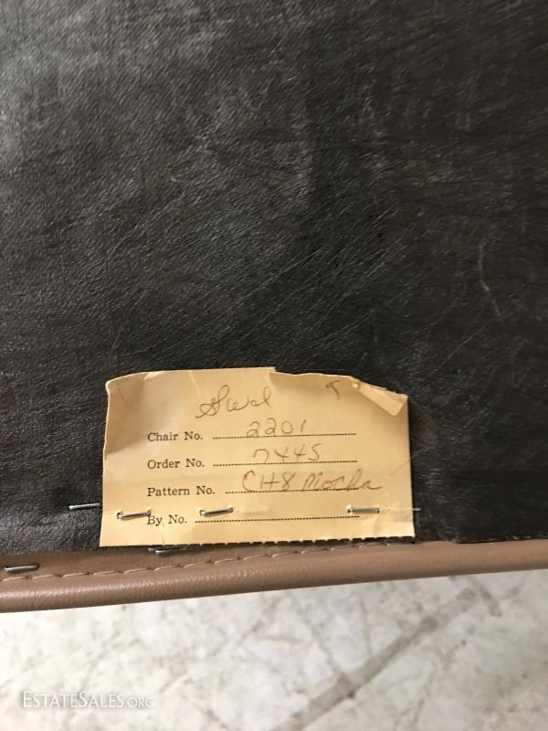 Chairs are in used condition with some wear and a bit dirty. Naugahyde upholstery, solid walnu legs and arms. marked Jasper Seating Company.