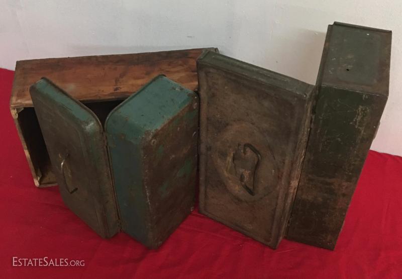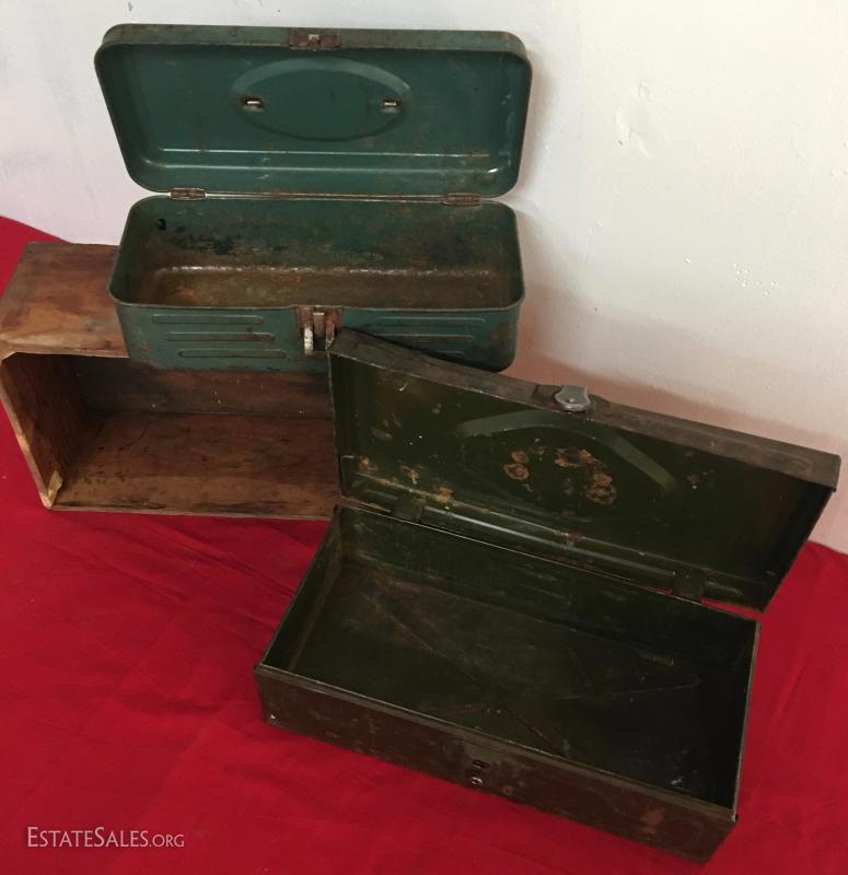 Lot/3 Boxes, Totes Tool Boxes Tackle Rusty Metal