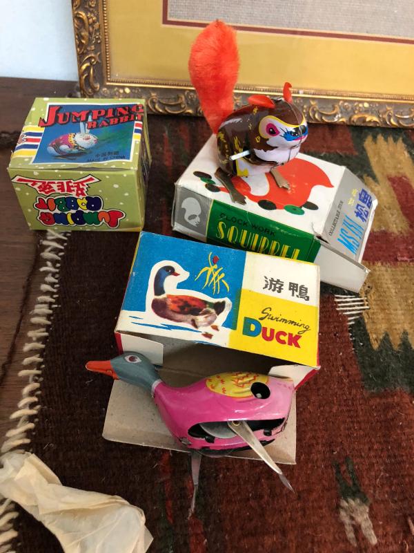 Lot of three small wind up tin toys in the box. If you need shipping please be aware that the cost of shipping may be more than what the item cost. All items ship from zip code 84109, you can go to USPS.com for estimates of cost.