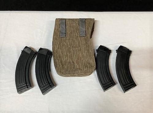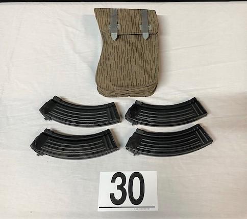 30 round mags w/ pouch. Appears to be NOS. Measurement: 11" x 7" x 2"