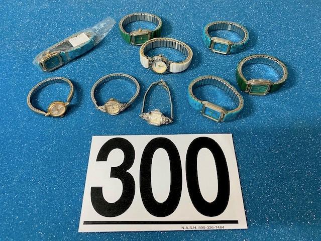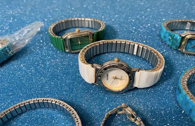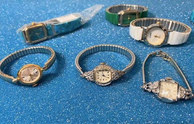 Includes: Timex, Pierre & more. Some missing stones. Estimated weight of lot: 1lbs. Measurement: 7" x 7"