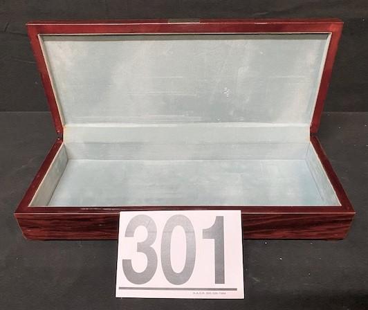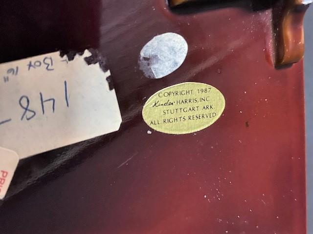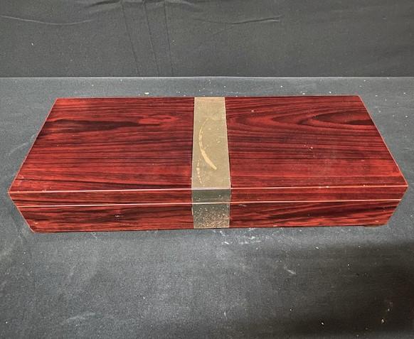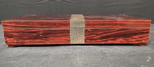 Vintage. High gloss. Inlaid copper strip. Measurement: 16"L x 6 1/2"D x 3"H