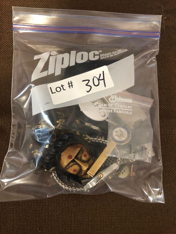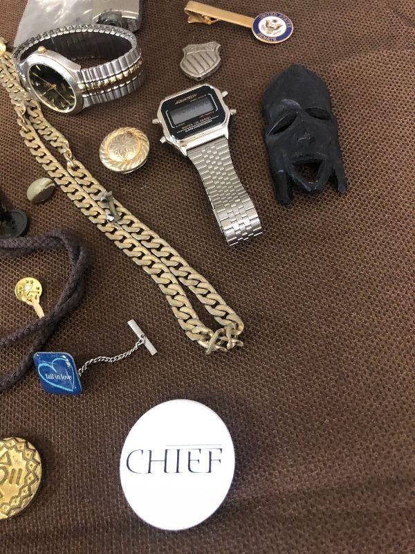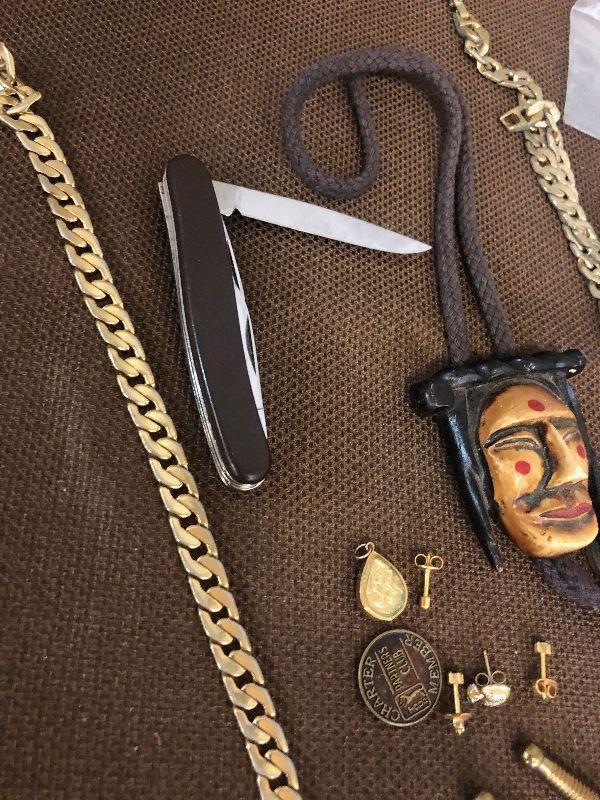 Lot#304 Men's Jewelry Lot: Pocket Knife, Chains, Bracelets, pins, watches