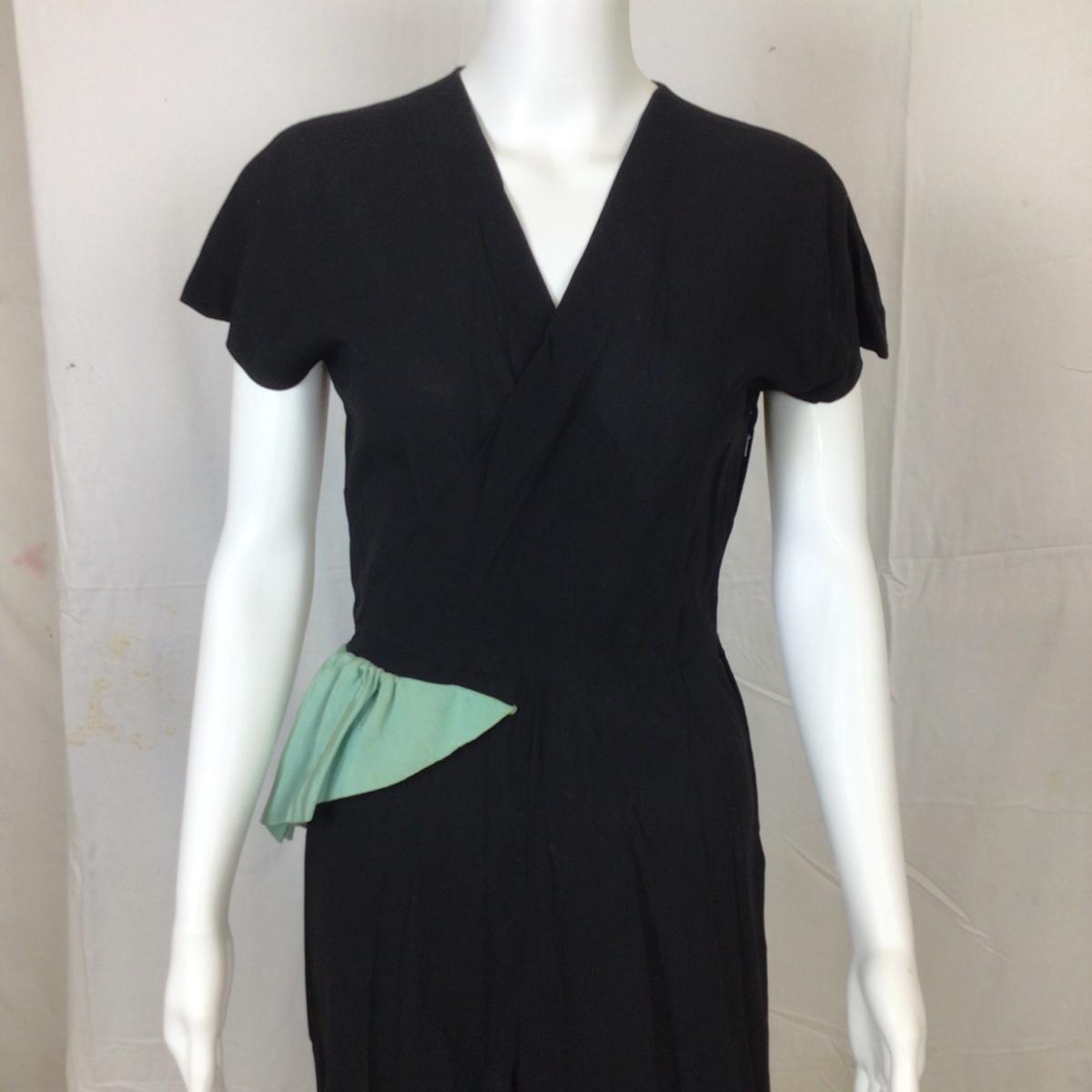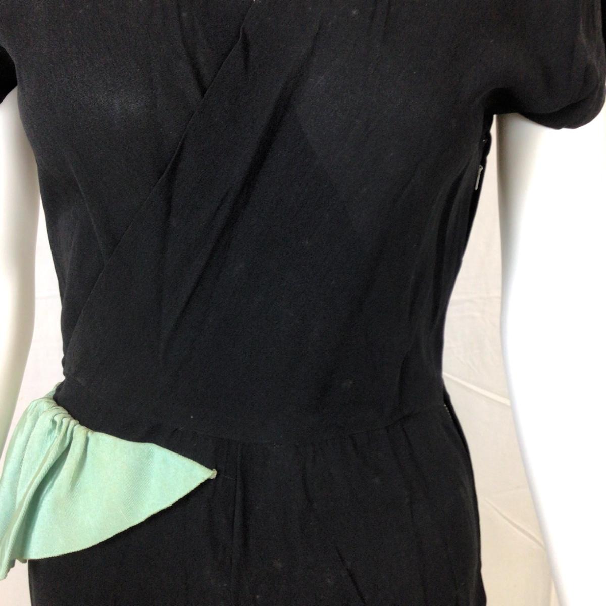309 Vintage 1950's Ben J. Gam Black Crepe Dress with Mint Green Ruffle