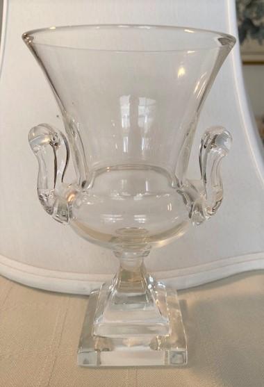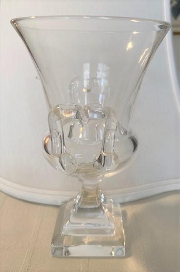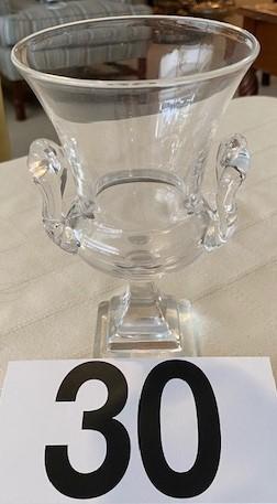 LOT#30LR: Signed Steuben Clear Glass Vase with Scroll Handles