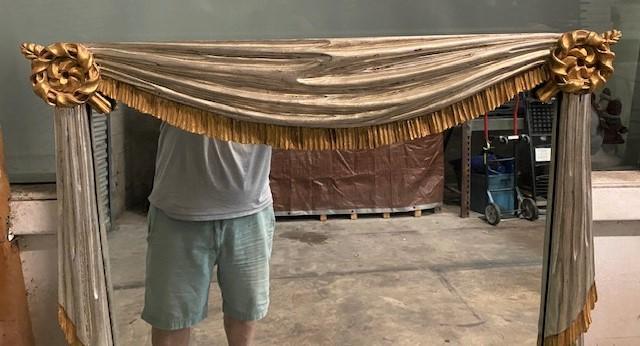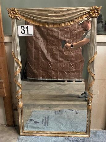 Painted gold & silver accents on frame. Estimated total lot weight: 80lbs. Measurements: 53"H x 34"W