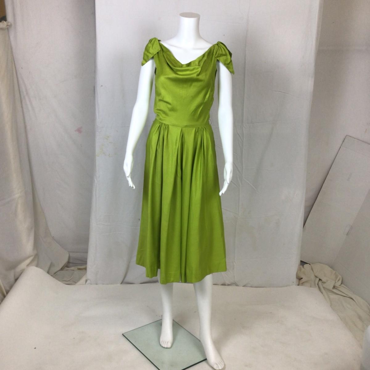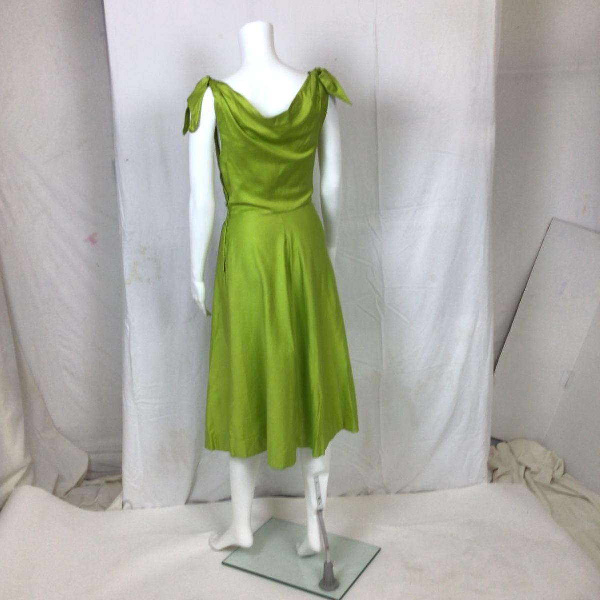 312 Vintage 1950's Lime Green Cotton Sleeveless Dress