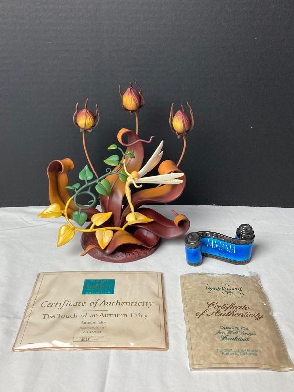 From the movie Fantasia “The Touch Of An Autumn Fairy” and Opening Title porcelain figurines. Both items come with certificate of authenticity and original boxes