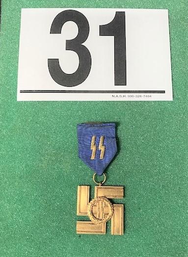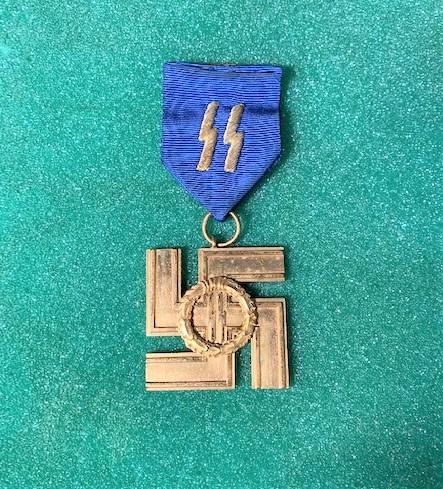 LOT#31B: German SS 12 Year Service Medal & Blue Ribbon