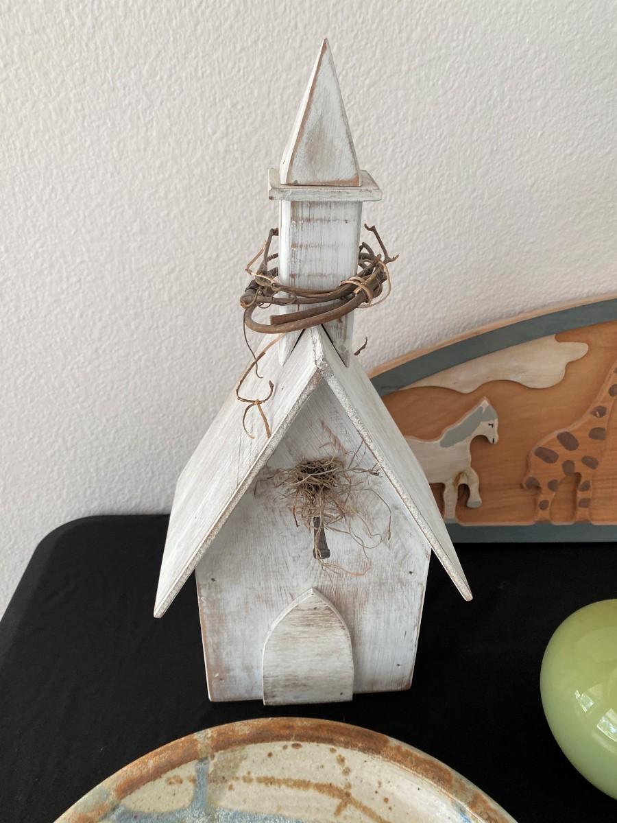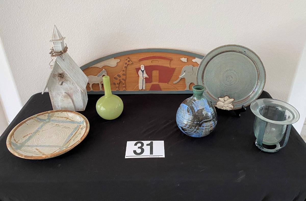 Includes bird house, artist-signed plates, artist-signed vase, and more. Measurement: 15"H (tallest) 36"W (widest)