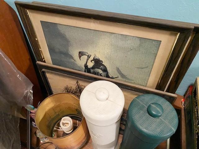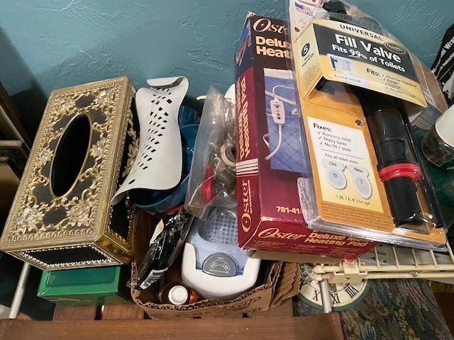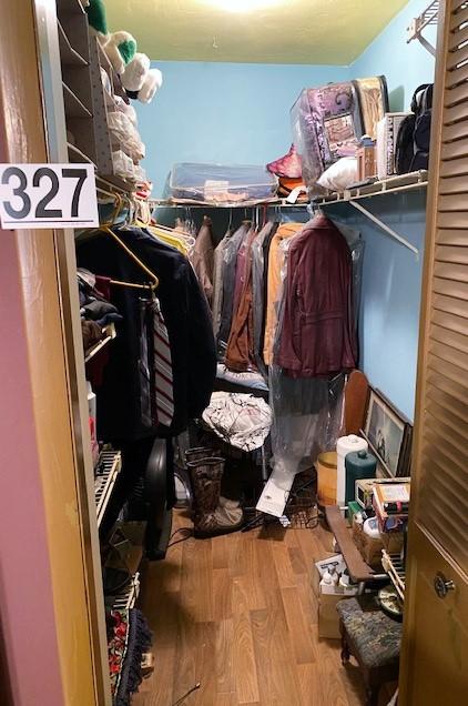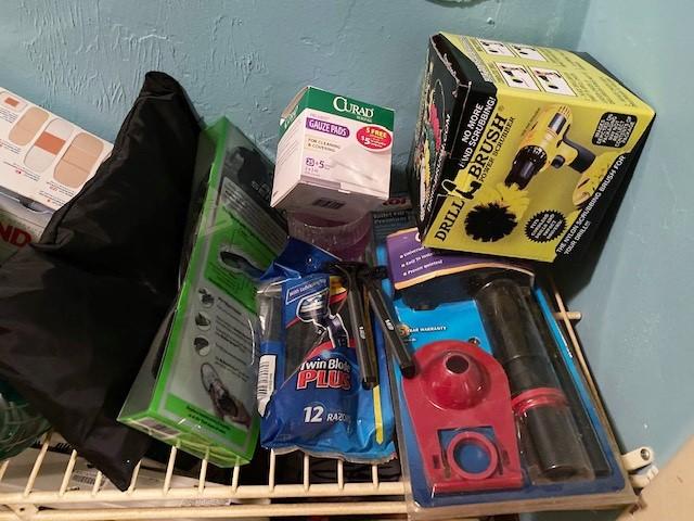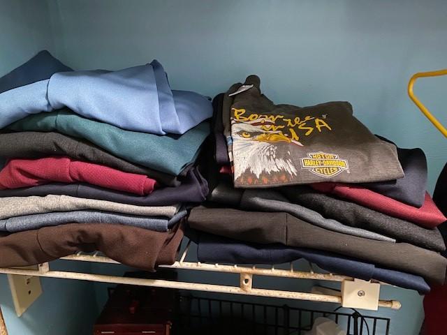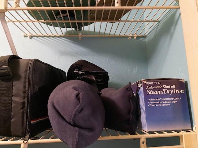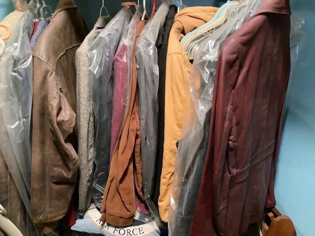 Includes some tools, unopened sundries, leather jackets, lamps, Honeywell fan, stuffed animals, unopened dress shirts (size 14 1/2), Hoover vacuum cleaner, mens clothes (mostly medium and large), mens slacks (size 31), unopened comforter, clothes steamer, and more. Winning bidder must take ALL items in lot.