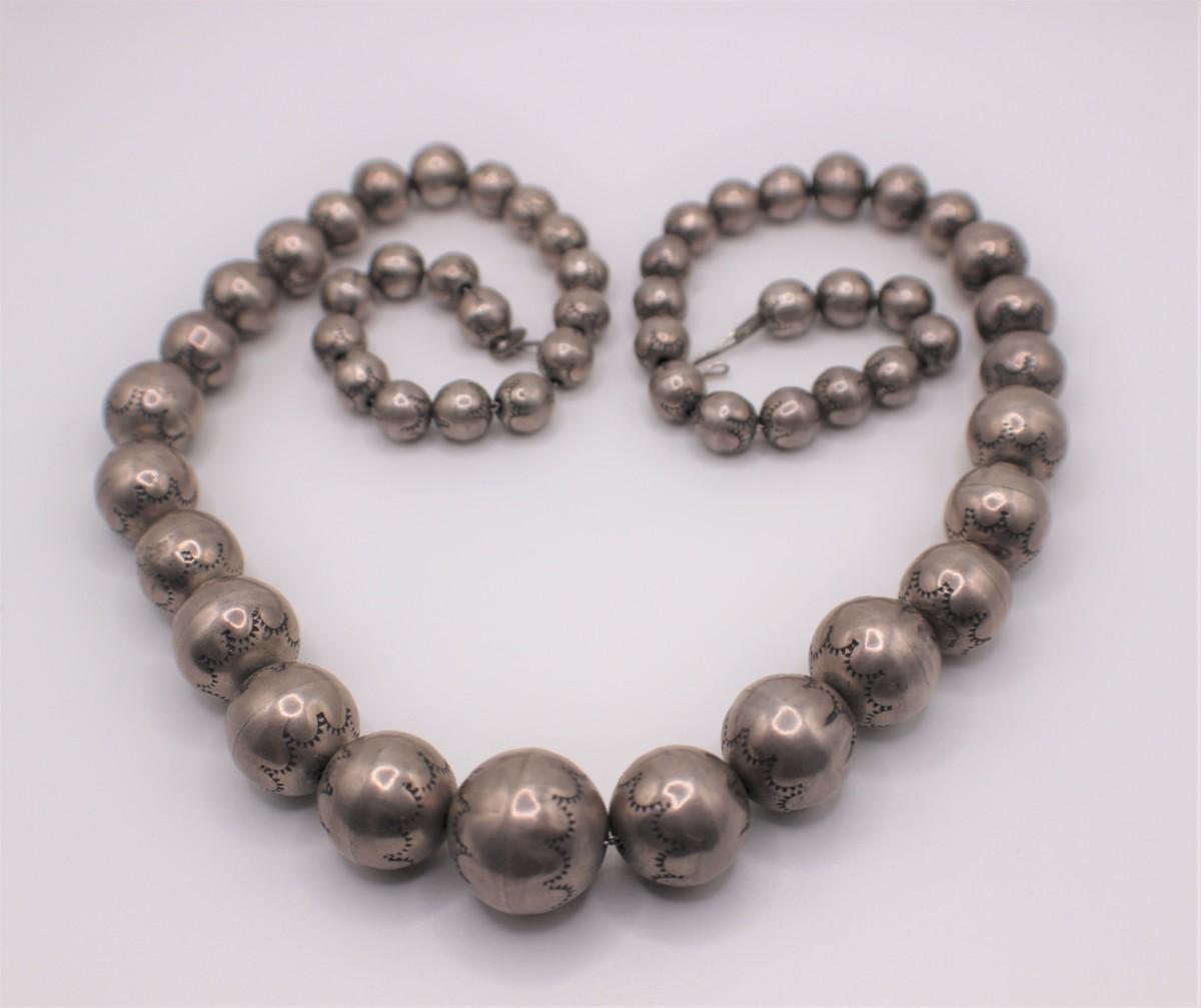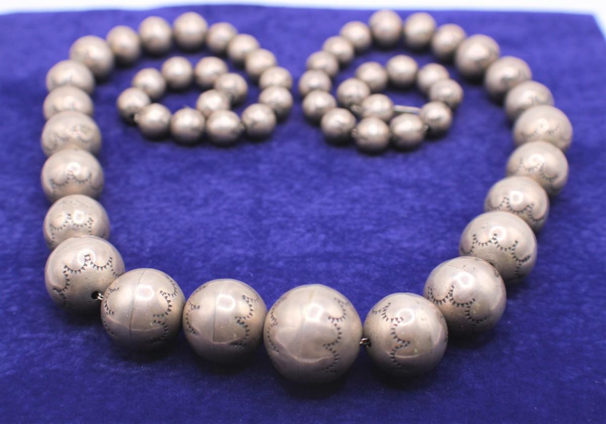 LOT#33: Tested .925 DM Begay Huge Graduated Bead Necklace [112.0g]
