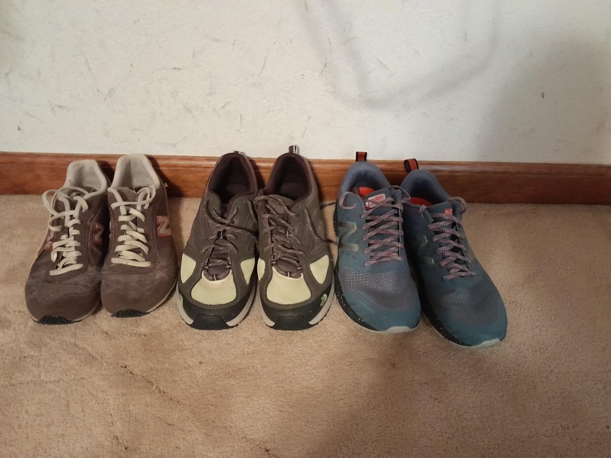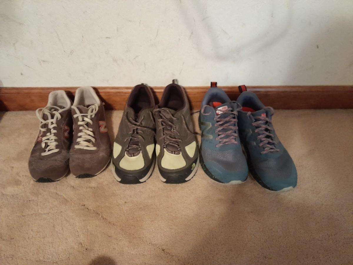 TWO PAIRS OF WOMEN'S NIKE SHOES AND ONE PAIR NORTH FACE SHOES 8 - 8.5