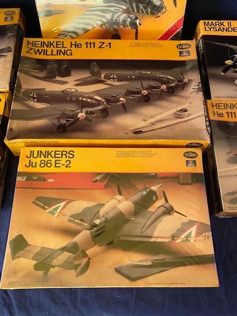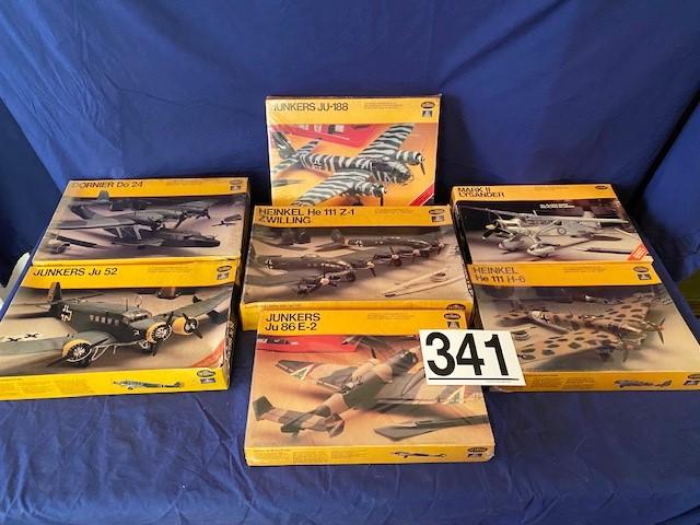 NOS. Includes Mark II Lysander, Heinkel H-6, Heinkel Z-1, Zwilling, Junkers JU86, Junkers JU188, Junkers JU52, and Dornier DO 24. Total of 8 pieces.