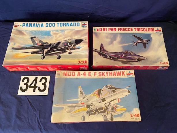 NOS. Includes MDD Skyhawk, G91 Pan Frecce, and Panavia 200 Tornado. All are 1:48 scale. Two still have overwrap. Total of 3.