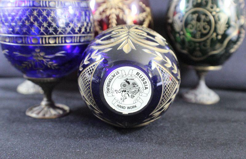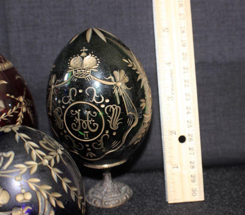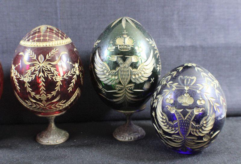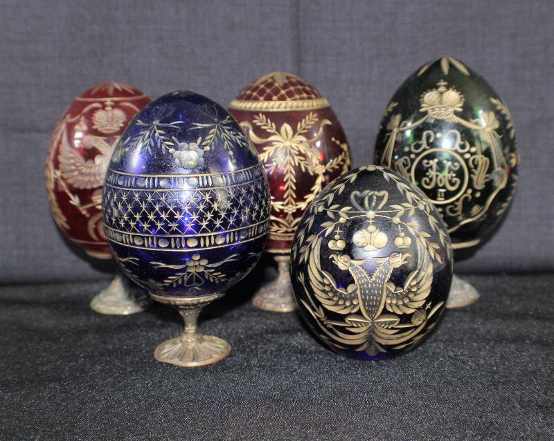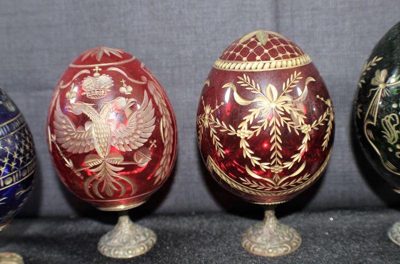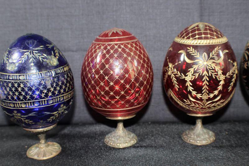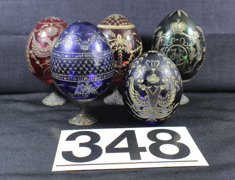 LOT#348: 5 Faberge Style Cut Glass Eggs