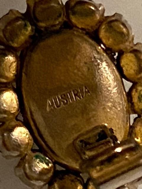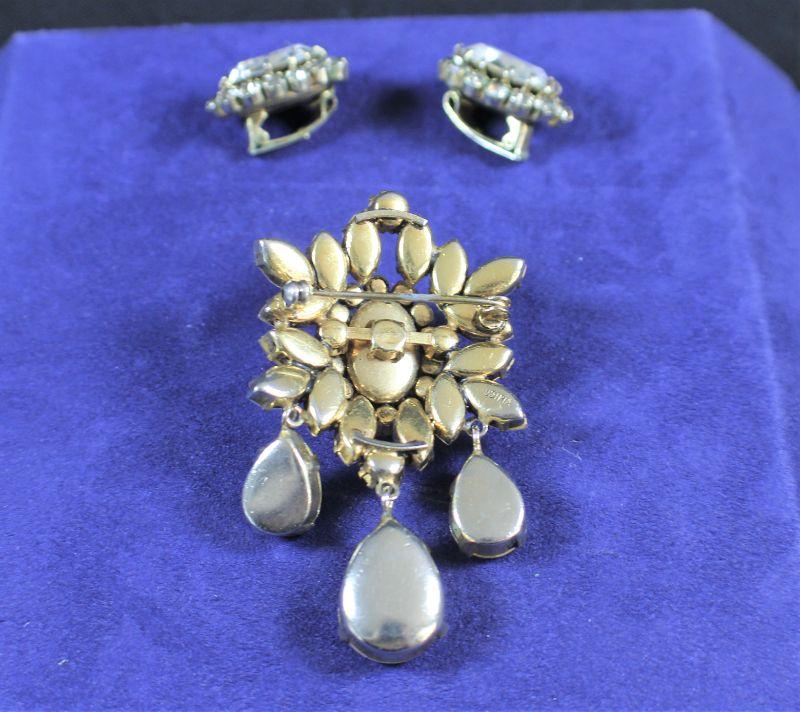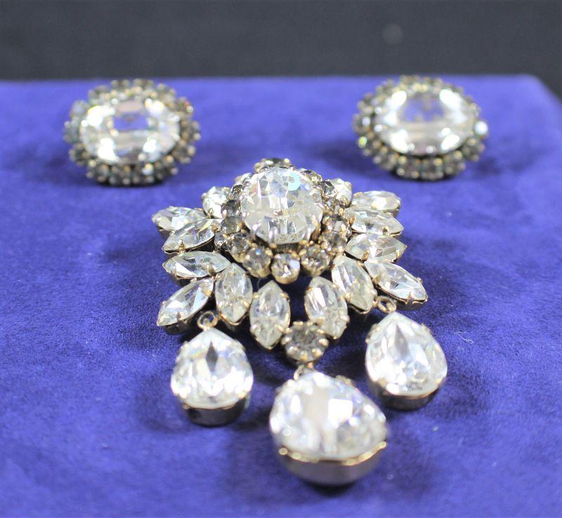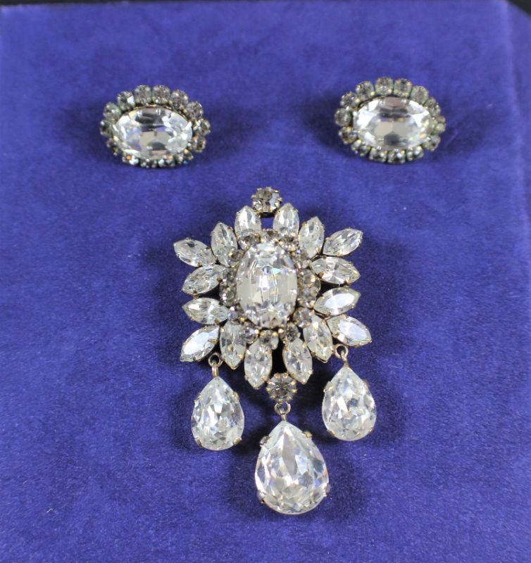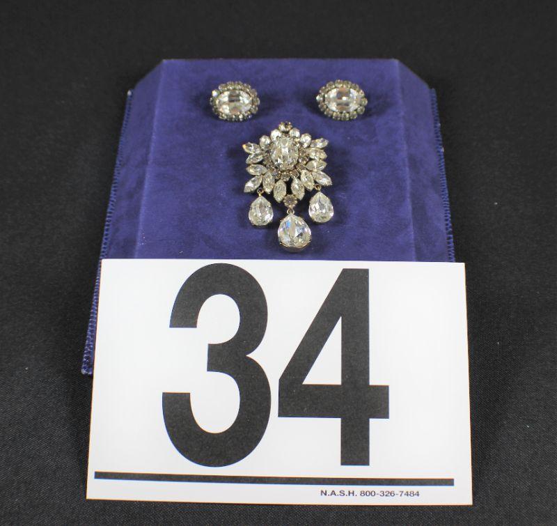 LOT#34J: Vintage, Marked Austria Crystal Brooch & Earring Set
