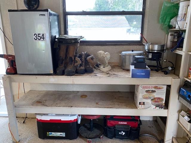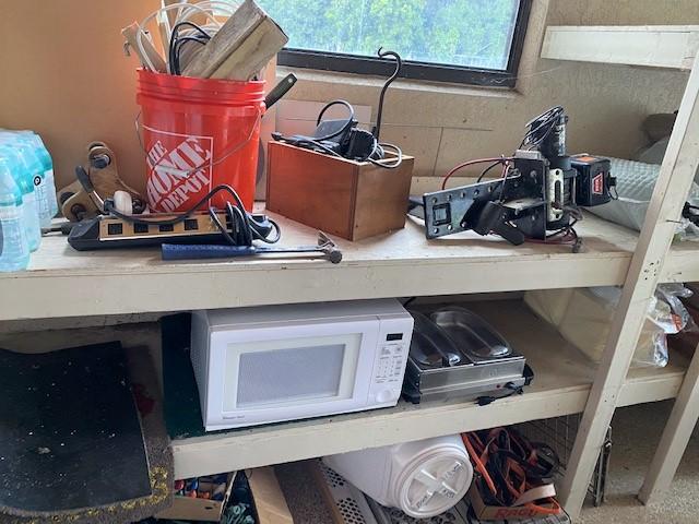 Includes screwdrivers, wrenches, boot dryer, boots, mini refrigerator, Hilti drill, luggage, Utilitech fan, Warn winch, chafing dishes, and more. Winning bidder must take all items in lot. Does not include central vacuum.