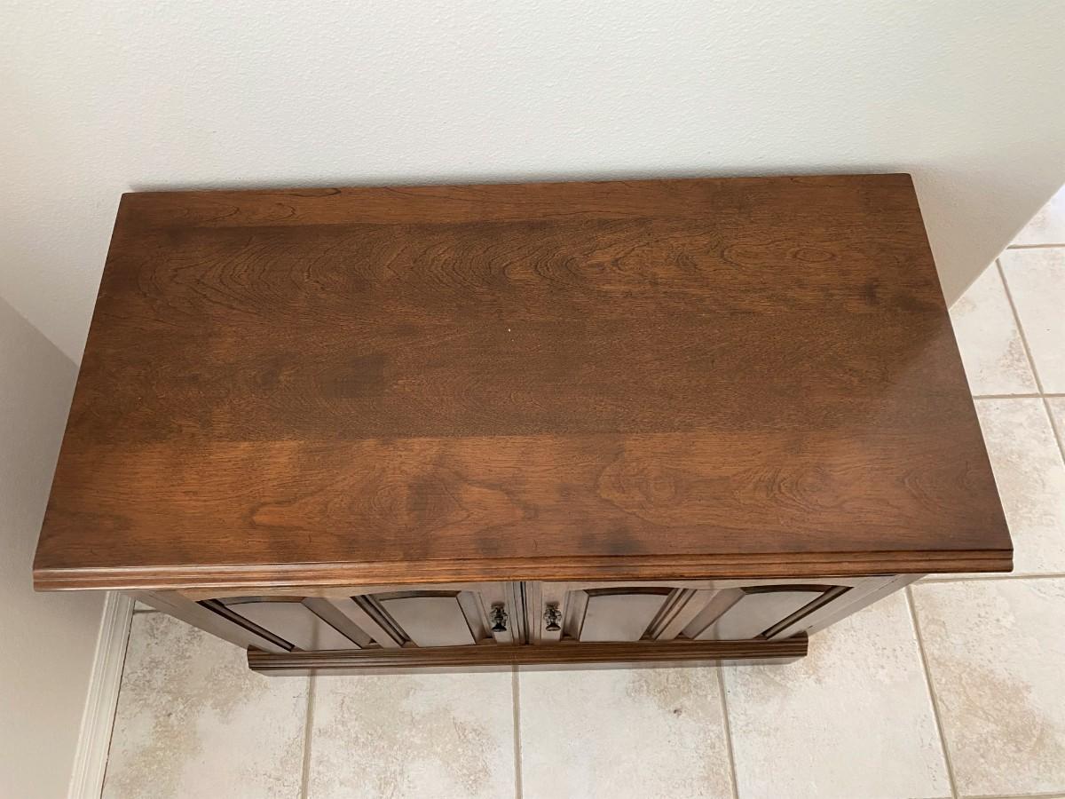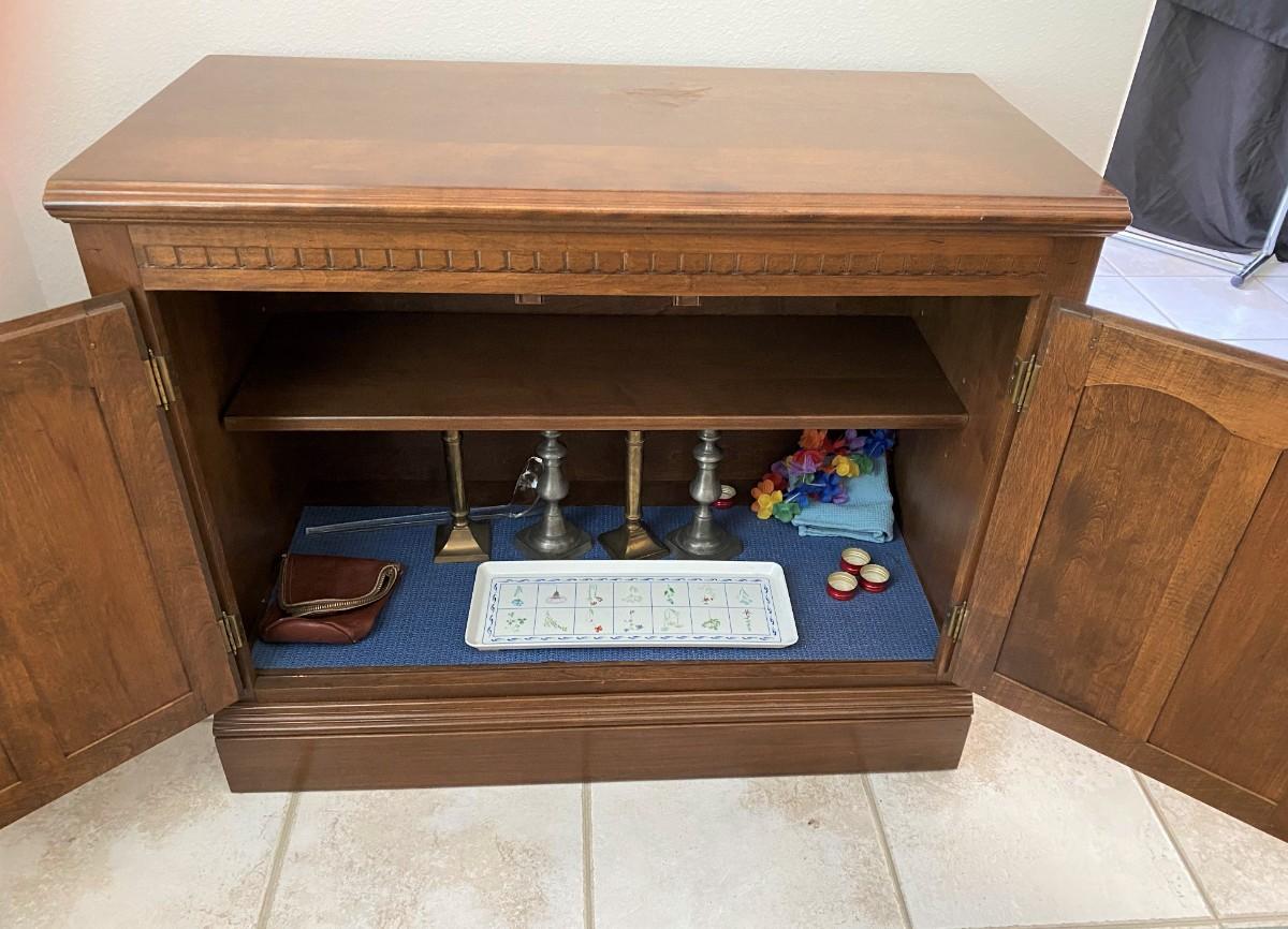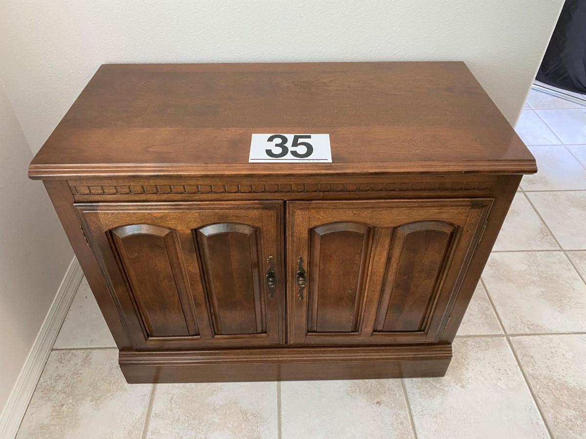 Bifold doors, two shelves. Includes contents. Measurement: 28"H x 34"W x 17"D