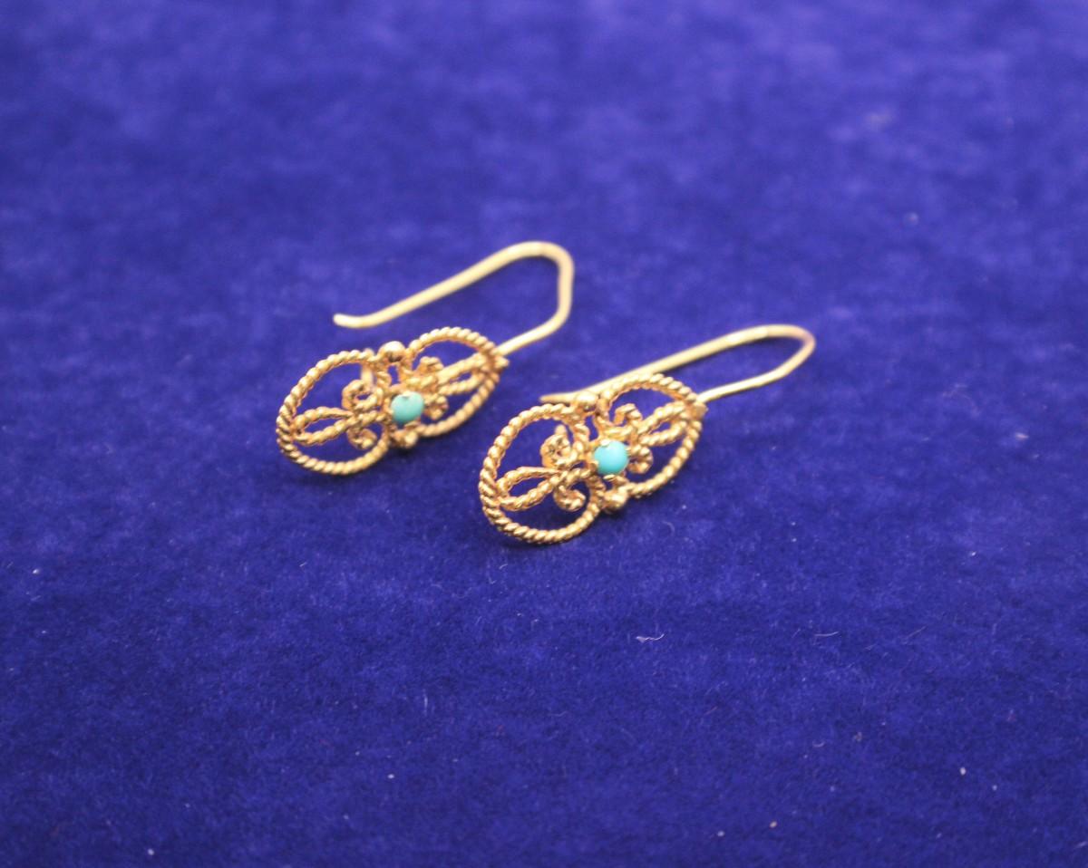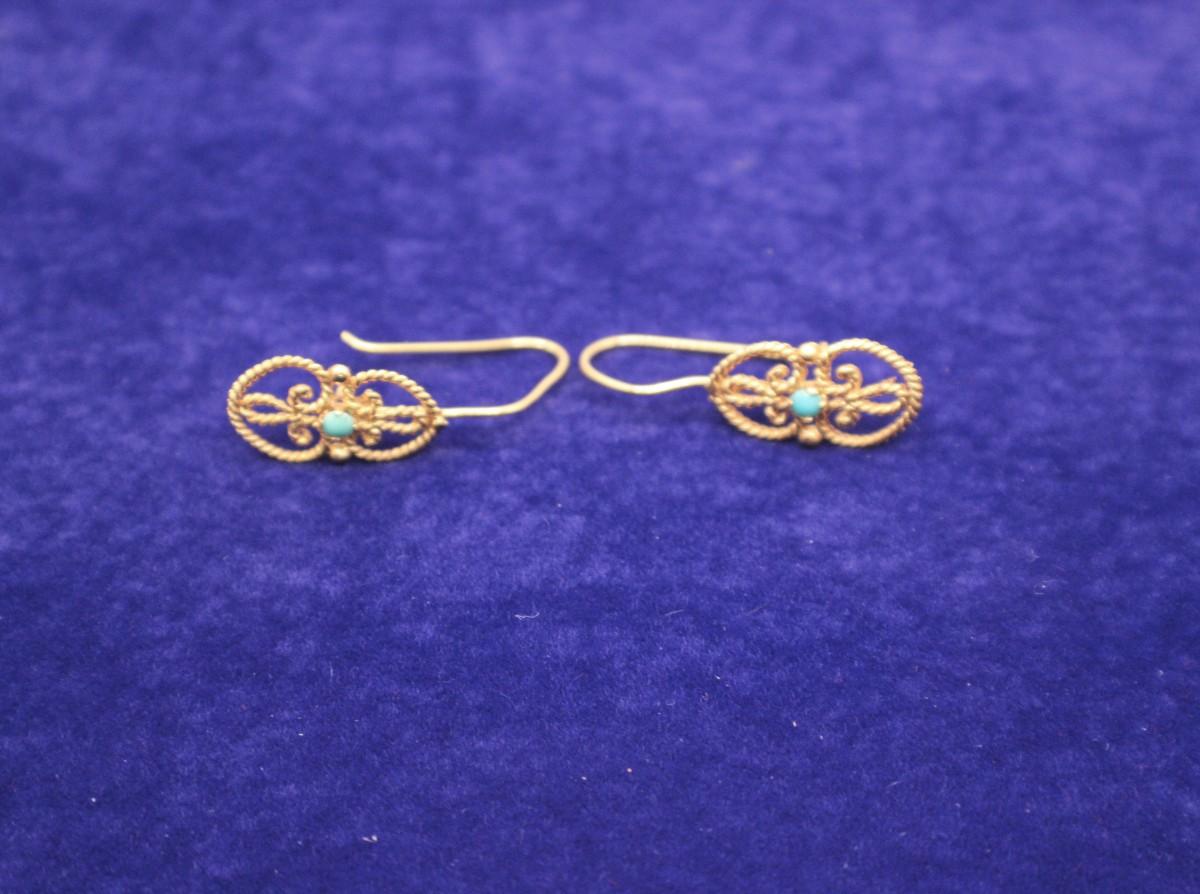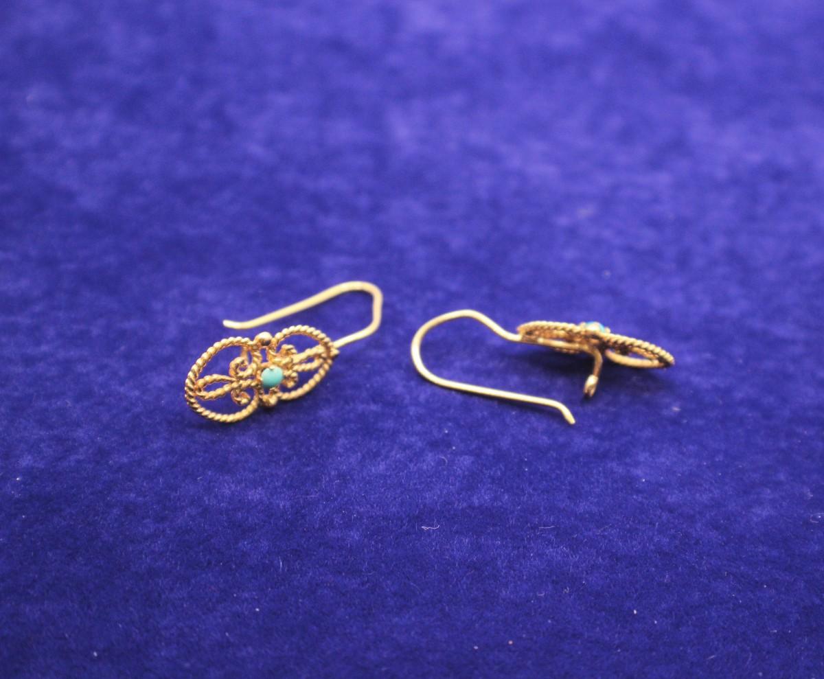 LOT#36: Tested 18K Gold & Turquoise Bead Earrings [2.30g]