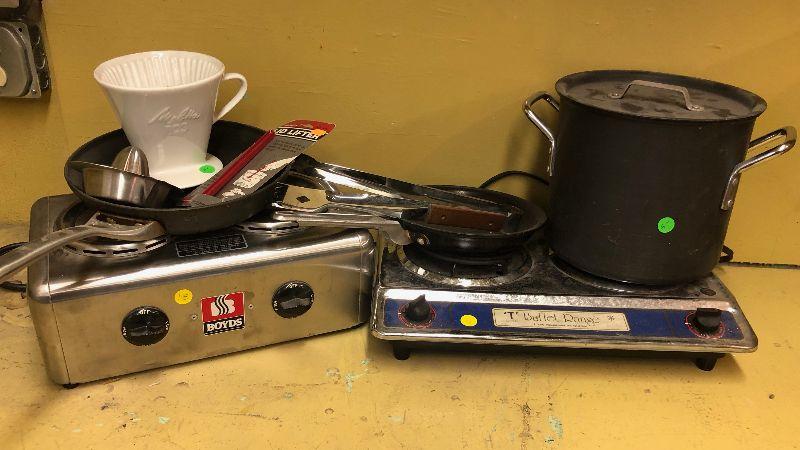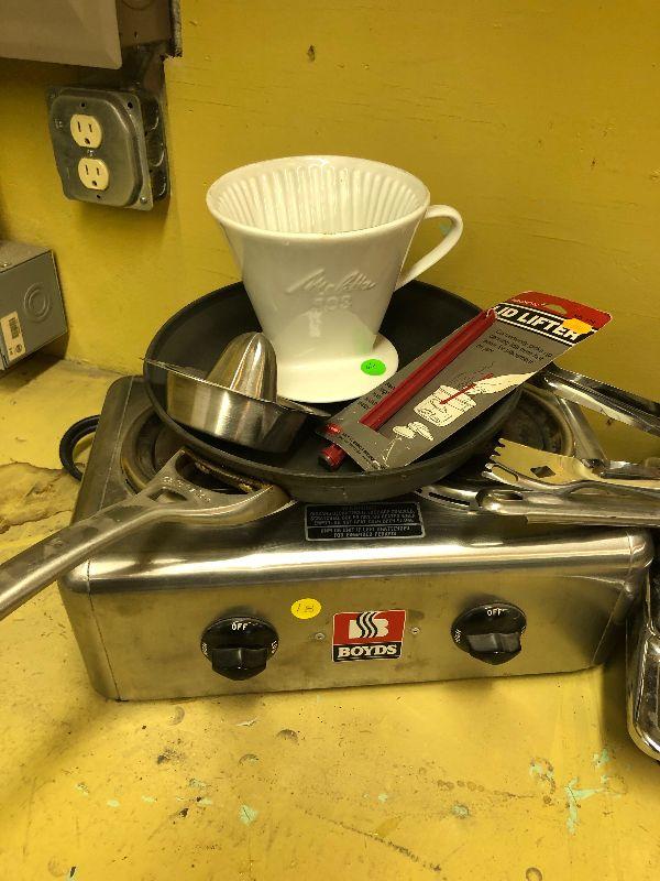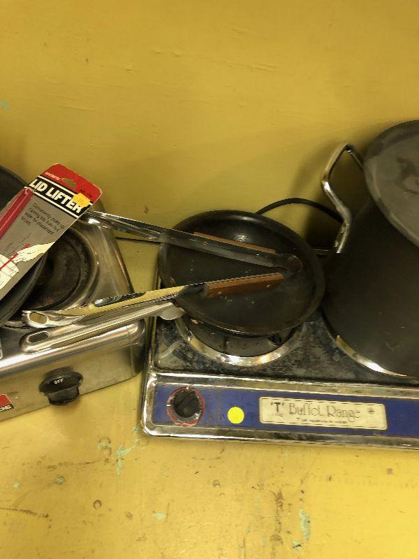 Lot#367 Cook Ware Lot: pans, utensils, hot plate etc.